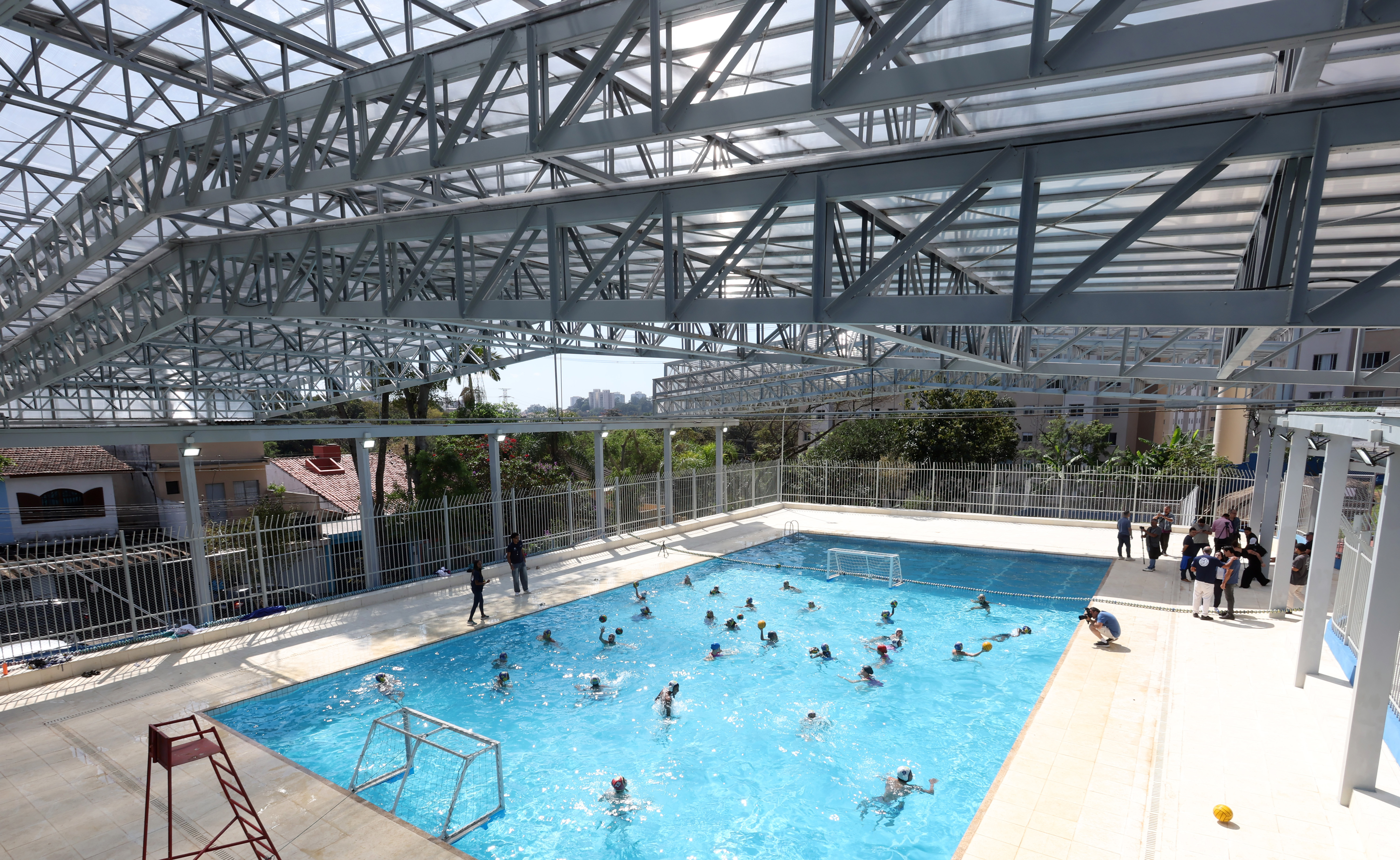 O projeto incluiu uma série de melhorias, entre elas: a reforma geral da piscina, que recebeu cobertura e sistema de aquecimento, possibilitando o uso durante todo o ano; a reforma da casa de máquinas, assegurando mais eficiência e segurança na operação; pintura geral de todo o complexo; reparos hidráulicos e elétricos, que garantem melhor funcionamento das instalações; além de manutenções corretivas em sanitários, vestiários e quadra poliesportiva.