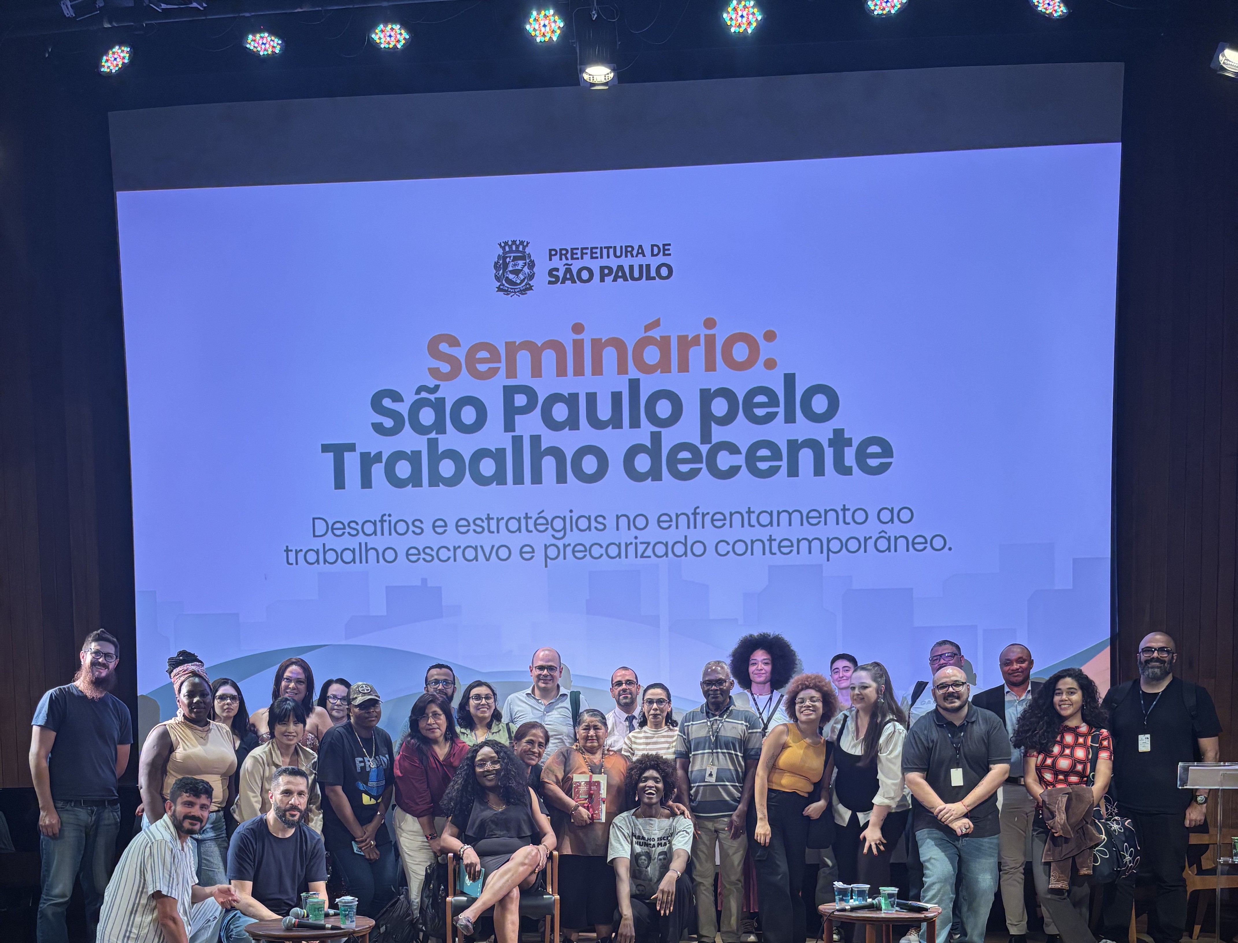 No dia 28/01, entre às 14h e 17h, a Secretaria Municipal de Direitos Humanos (SMHDC) e a Coordenação de Políticas para Imigrantes e Promoção do Trabalho Decente realizaram o Seminário: São Paulo pelo Trabalho Decente: Desafios e estratégias no enfrentamento ao trabalho escravo e precarizado na cidade de São Paulo. O evento aconteceu na Biblioteca Mário de Andrade, na Rua da Consolação, 94 - República, São Paulo – SP.