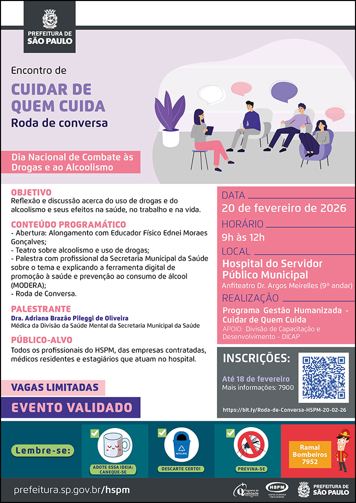 Inscrição pelo link: https://bit.ly/Roda-de-Conversa-HSPM-20-02-26 até 18 de fevereiro