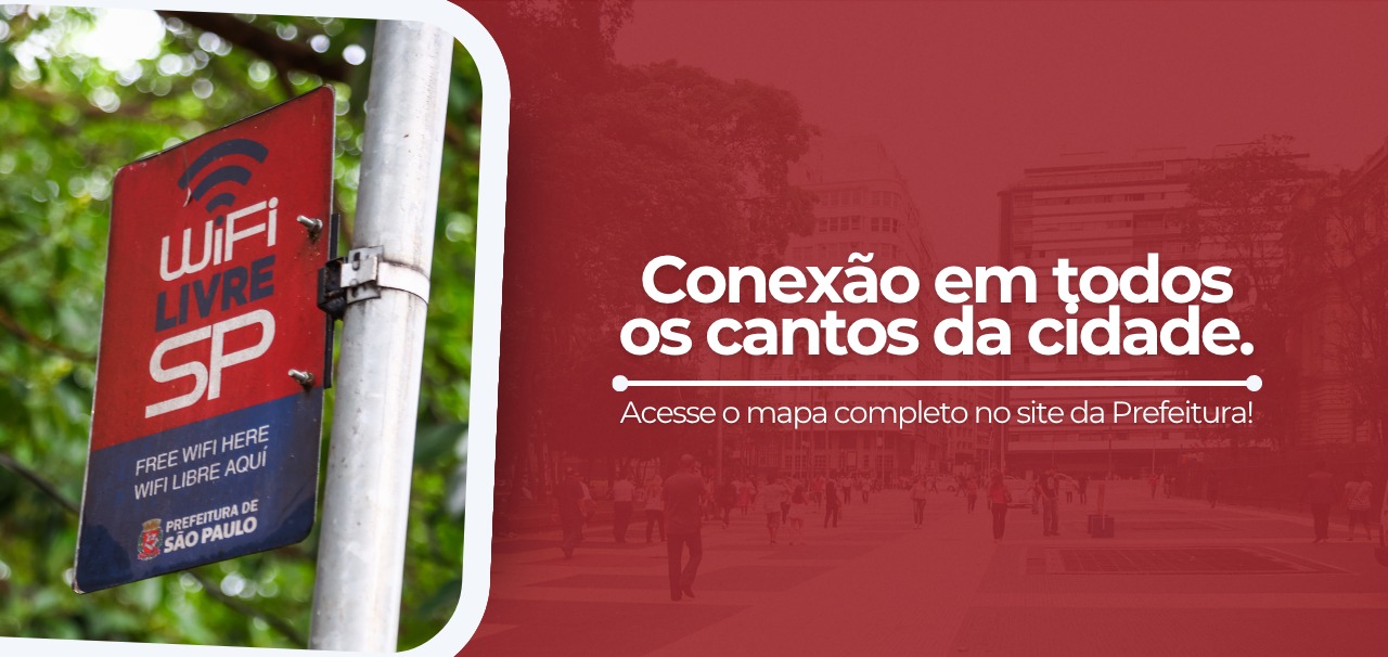 Pontos de acesso à internet pública em praças, parques, Centros Culturais, CEUs, Unidades de Saúde, Teatros, Bibliotecas, entre outros