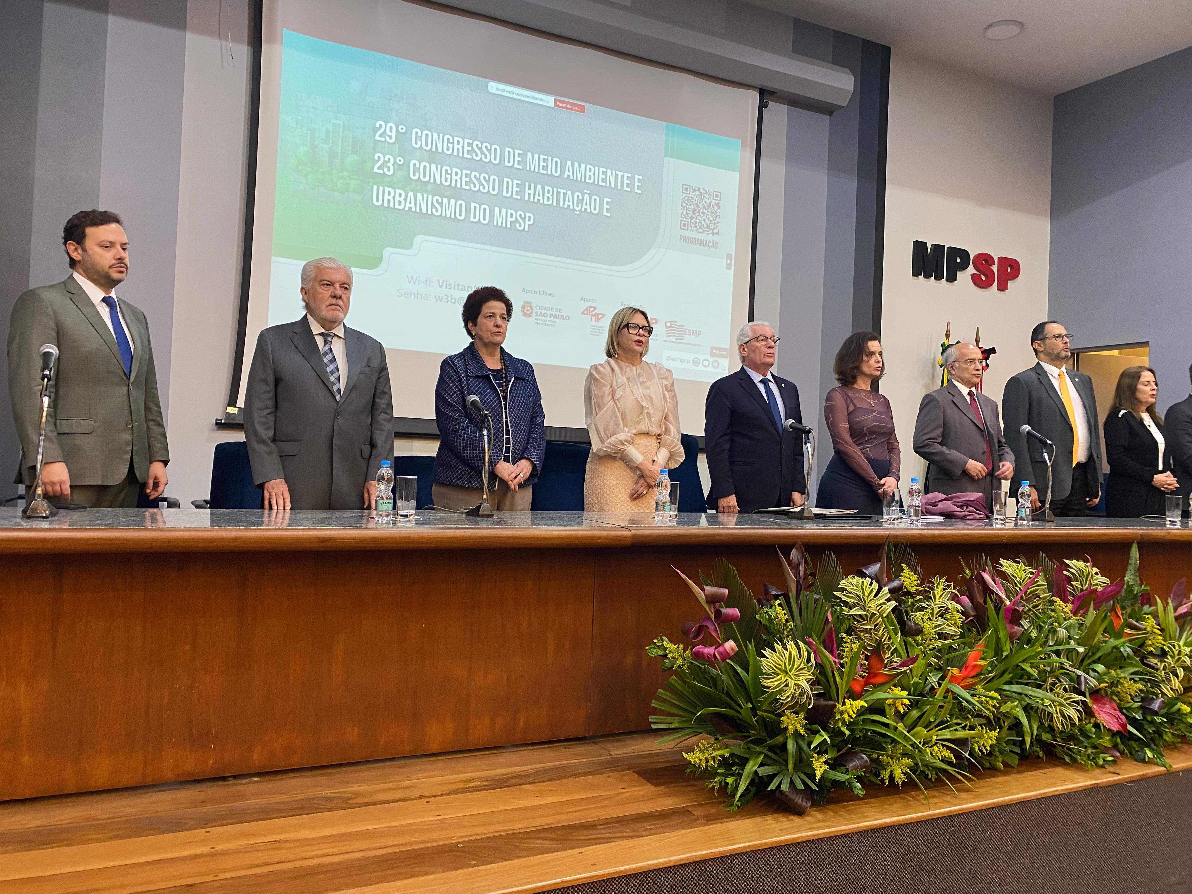 Nesta quinta-feira (17/09), o Secretário Municipal de Justiça, André Lemos Jorge, representando o prefeito Ricardo Nunes, participou da abertura do 29º Congresso de Meio Ambiente e do 23º Congresso de Habitação e Urbanismo, realizados no auditório do Ministério Público de São Paulo.