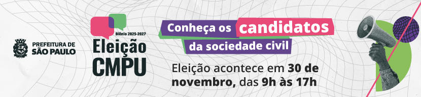 A Prefeitura de São Paulo, por meio da Secretaria Municipal de Urbanismo e Licenciamento (SMUL), divulga a relação das candidaturas homologadas que irão disputar as vagas da sociedade civil no Conselho Municipal de Política Urbana (CMPU) para o biênio 2025-2027. A votação será no dia 30/11, das 9hs às 17h, nas unidades do Descomplica-SP.