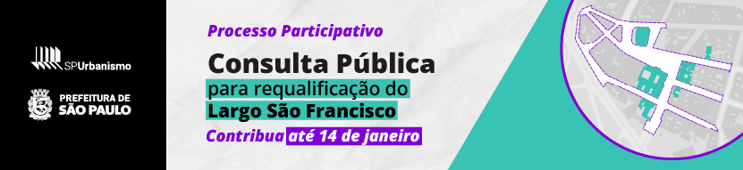 A Prefeitura de São Paulo, por meio da São Paulo Urbanismo e da Secretaria Municipal de Urbanismo e Licenciamento (SMUL), abriu a consulta pública on-line sobre a requalificação da região do Largo São Francisco, um dos espaços mais emblemáticos do centro histórico da capital. A participação está disponível na plataforma Participe+ até 14 de janeiro de 2026. Clique aqui para participar.