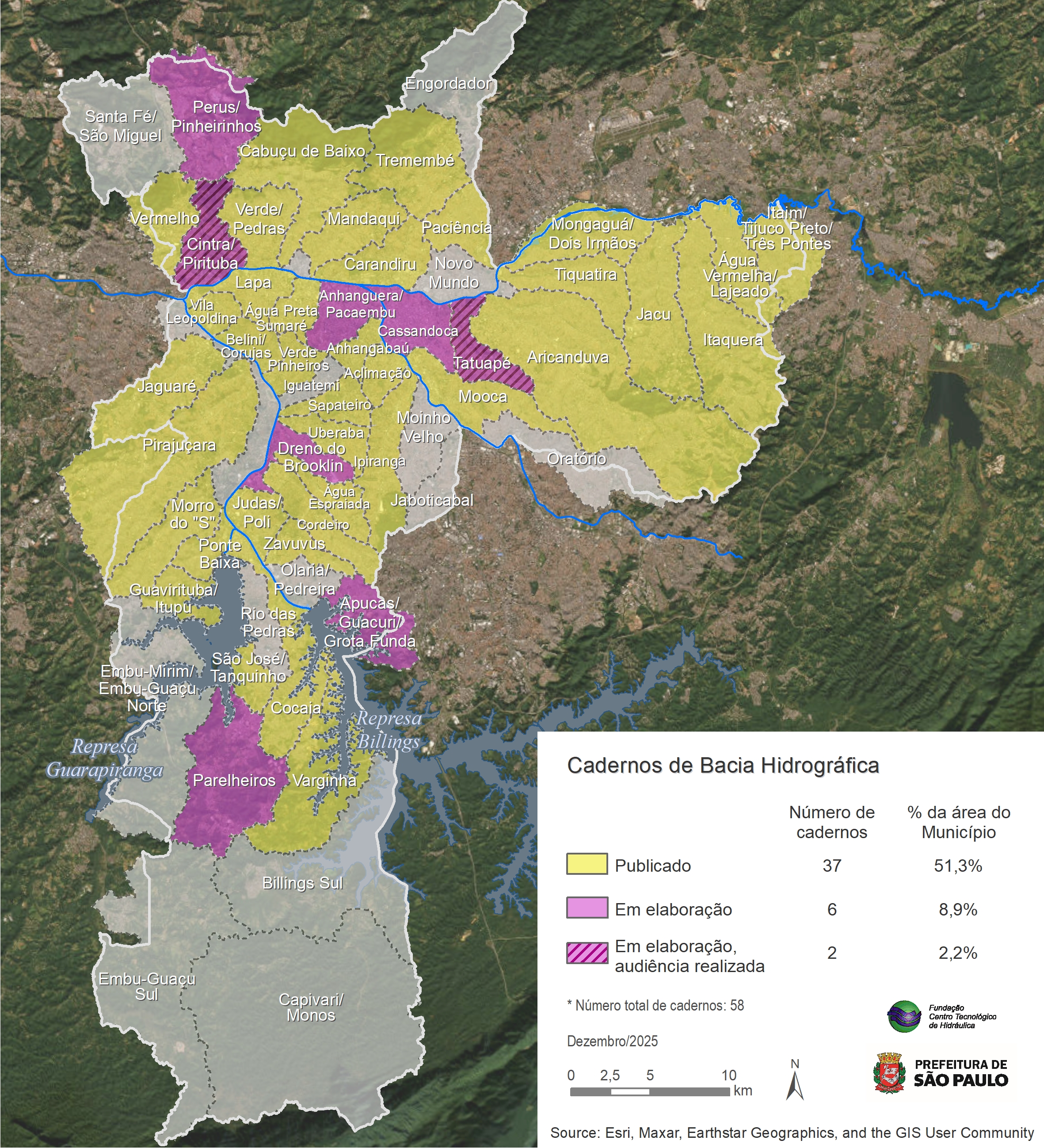 OBJETO: Elaboração dos Cadernos de Bacia Hidrográfica para: Ponte Baixa (Subprefeituras M’Boi Mirim e Capela do Socorro); Zavuvus (Subprefeituras Santo Amaro e Cidade Ademar); Carandiru (Subprefeituras Casa Verde-Cachoeirinha, Santana-Tucuruvi e Vila Maria-Vila Guilherme); Paciência (Subprefeituras Vila Maria-Vila Guilherme, Santana-Tucuruvi e Jaçanã-Tremembé); e Itaim/Tijuco Preto/Três Pontes (Subprefeituras São Miguel e Itaim Paulista e Prefeituras Ferraz de Vasconcelos, Itaquaquecetuba e Poá).