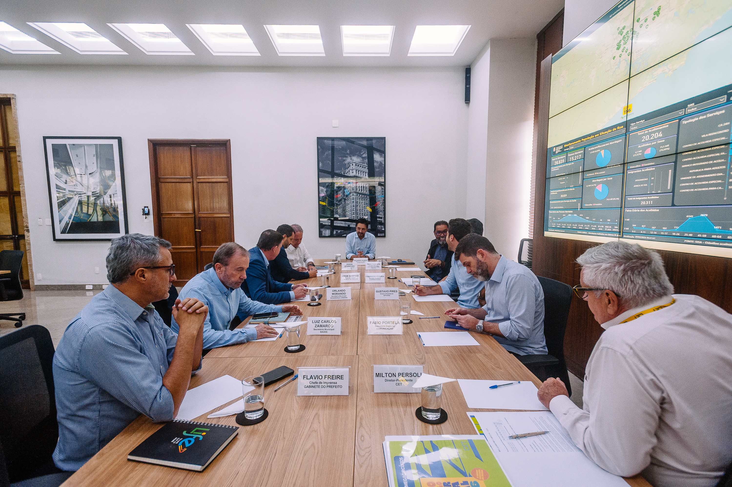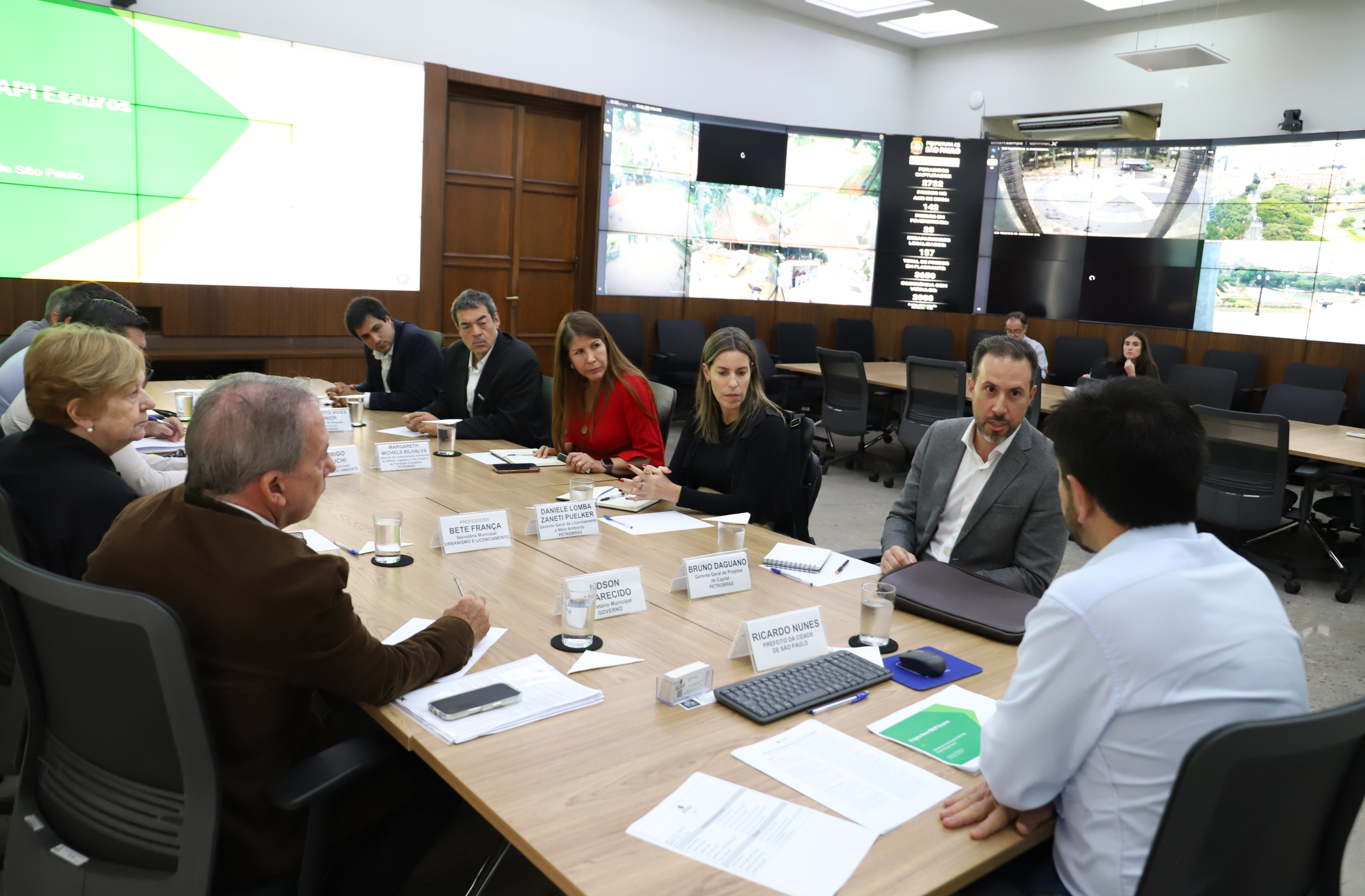 O prefeito Ricardo Nunes se reuniu nesta manhã com o gerente geral de projetos de capital na Petrobras, Bruno Daguano; o gerente de projetos da Petrobras, Leandro Bastos Machado; e a gerente de saúde, meio ambiente e segurança da Petrobras, Daniele Lomba Zaneti Puelker. O encontro também contou com a participação de outros representantes da companhia e da Prefeitura de São Paulo.