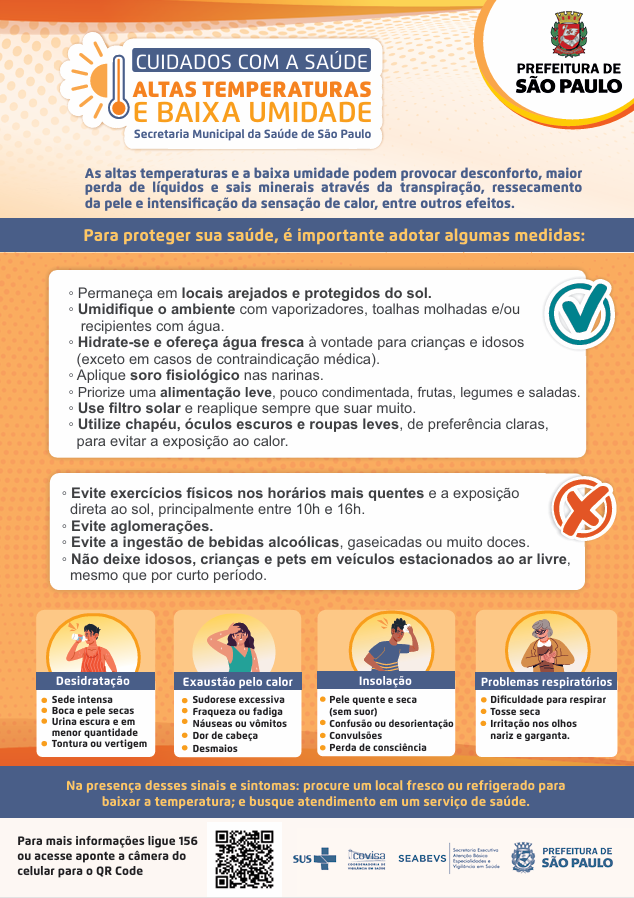 Considerando a PORTARIA CONJUNTA Nº 629 / SMADS / SMS / 2024, que dispõe sobre as medidas a serem adotadas em situações de altas temperaturas e baixa umidade do ar, além de orientações gerais e especificas à população sobre como agir nessas condições, e que as bruscas mudanças climáticas demandam ações para garantir a proteção e a saúde de todos.