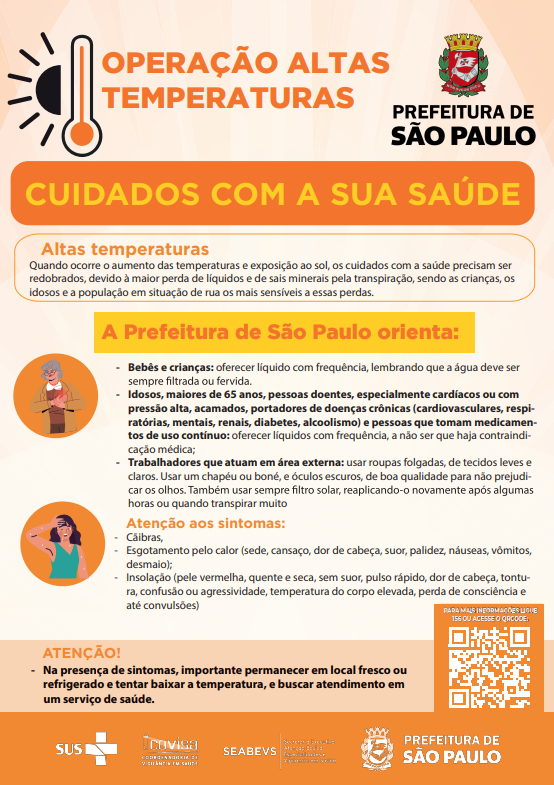 Proteja-se para evitar insolação, desidratação e outros problemas que podem decorrer da exposição ao sol forte e altas temperaturas, principalmente acima de 32°C na cidade de São Paulo.