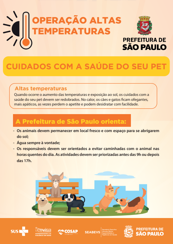 Os cães e gatos ficam ofegantes, mais apáticos e podem desidratar com facilidade. Eles também precisam de cuidados com a saúde.
