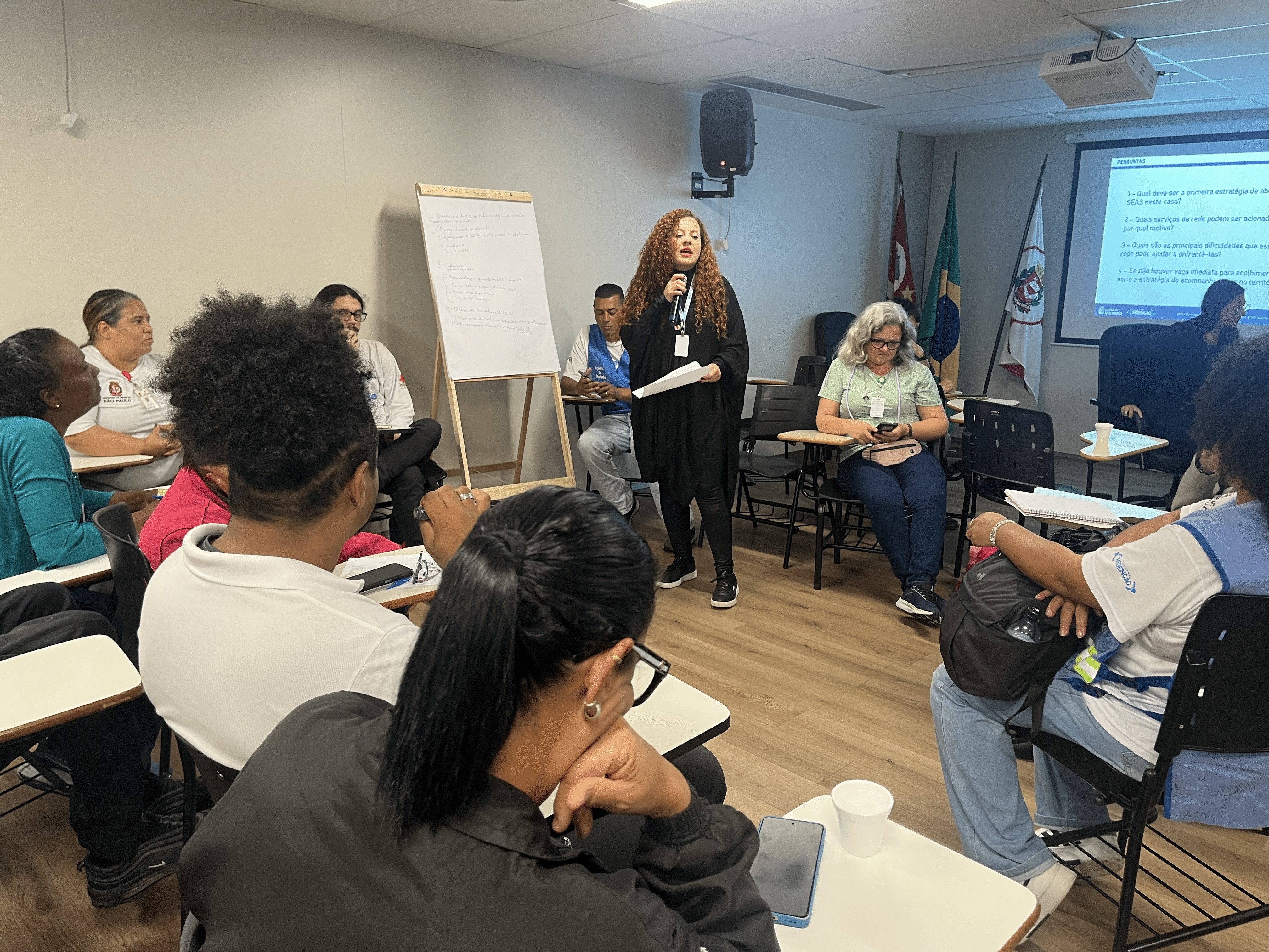 As representantes da Saúde e Assistência Social, Fabiana Pires e Mary Luciana da Cunha Silva, respectivamente, também fizeram uma apresentação sobre o trabalho das equipes dos agentes do Consultório na Rua (CnR) e Serviço Especializado de Abordagem Social (SEAS) nos territórios prioritários Santa Ifigênia, Campos Elíseos, Glicério, Parque Dom Pedro e Okuhara Koey.