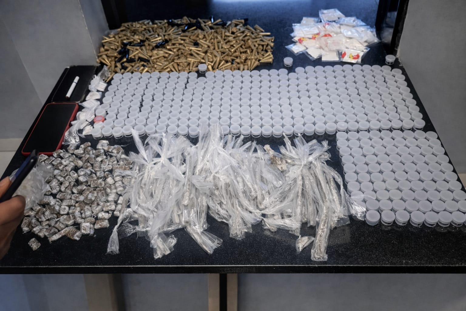 Ao todo, foram encontrados e apreendidos 586 invólucros com maconha, 429 eppendorfs “pinos” com cocaína, 126 pedras de crack, além de 525 papelotes da droga conhecida como “spice” e 13 trouxinhas de “ice”, entorpecente análogo ao haxixe, totalizando 1.679 unidade de substâncias ilícitas.