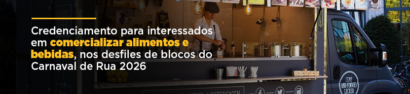 A Subprefeitura Vila Mariana publicou hoje (10/02) no Diário Oficial a Portaria 029/SUB-VM-AJ/GAB/26, que abre mais 05 vagas para "foodtrucks" comercializarem alimentos e bebidas no Carnaval de Rua 2026, especificamente no circuito do Ibirapuera.
